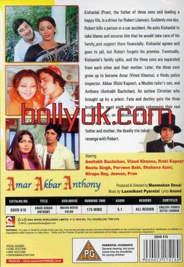 Kishanlal Pran , the father of three sons and leading a happy family life, is a driver for Robert Jeevan. Suddenly one day Roberts kills a person in car accident. He asks kishanlal to take the blame and assure him that he would take care of his family and support them financially. Kishanlal agrees and goes to jail, but Rober forget his promise . Eventually, Kishanlal's family splits, and the three sons are sepearted from each other and their mother. Later , the htree sons gorw up to become Amar , a Hindu Police Inspector, Akbar , Muslm tailor's son and Anthony ( Amitabh Bachan), an outlaw Christian who is brought up by a priest. Fate and destiny gets the three brothers to meet each other again unkowingly their real relation. Later,on realization of the realy story and after the reunion with their father and mother, the deadly trio take revenge with Robert.